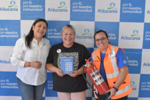 Antonieta Vargas, Jefa de Relación con la Comunidad destacó la alta convocatoria que tuvo el primer taller sobre uso de extintores, que contó con una activa participación de cada una de las JJVV de Carahue, comuna donde se realizó la primera jornada.