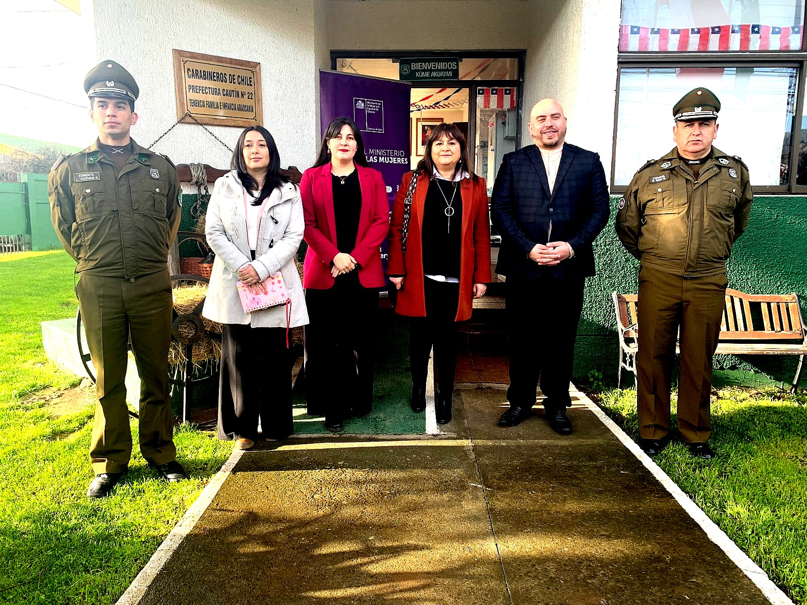 En el marco de las celebraciones de Fiestas Patrias que se avecinan, la Seremi de la Mujer y la Equidad de Género, Justicia y Derechos Humanos (s), Sol Kaechele; junto al Seremi de Seguridad, Israel Campusano, Coronel Ramón Rost, Jefe Departamento de Operaciones de la Zona Araucanía de Carabineros, y Directora Regional de SernamEG, Susana Aguilera, se reunieron en la Tenencia de Familia de La Araucanía, para abordar las estrategias de prevención en caso de violencias de género y dar a conocer el catálogo de derechos que establece la Ley Integral contra la Violencia hacia las Mujeres.